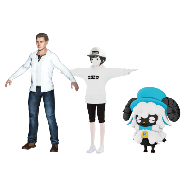 アニメ系キャラクターアバターと、リアルな人物風アバターのどちらの3Dアバターも製作可能です。リアル人物風アバター制作の場合には、実際に人物を3Dスキャナーを使用して3Dスキャンし、3Dデータを作成することも可能です。モーションキャプチャーにより、オリジナルのモーションを作成することも可能です。声優により、オリジナルの音声を収録することも可能です。アバターの衣装は様々なテキスタイルの表現も可能です。3D上で柄替えも簡単に可能です。但し、DOOR(byNTTXR)の場合、一部容量制限があります。