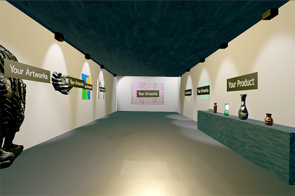 DOORやVRChat等のメタバース・プラットフォームや独自WEBにおいて使用可能な3Dバーチャル展示ブースを制作します。